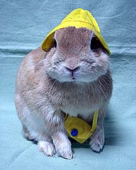 | 「梅雨」 六月のイメージは梅雨。色々考えたんですが・・ やっぱり、雨・・となると傘ですよね。 今回は頭にかぶせたり、乗せたりできなかったんで、 難しいかな?と思ったら・・ 本兎、気せず、動せずでした。 |