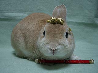 | 「雛祭り」 三月三日はおひなさま。HPのトップを飾るにはやっぱり、 お内裏様とお雛様じゃなくっちゃね。 と、いうことで・・ お内裏様はもちろん、りん。 おひな様はドアストッパー・ロップちゃんの出番です。 |