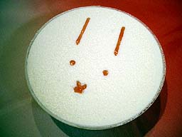 モロゾフ イースターレアチーズケーキ 真っ白なレアチーズケーキに、 ラズベリーソースで可愛いうさぎさんの 顔が描かれています。 |
