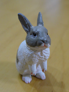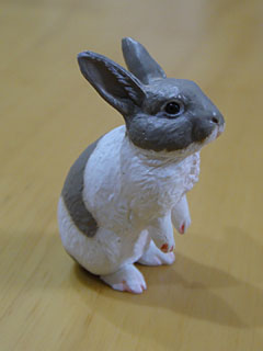 飼いうさぎは白、白/灰、パンダうさぎの3種類。とてもキュートなポーズです。