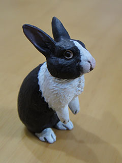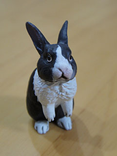 飼いうさぎは白、白/灰、パンダうさぎの3種類。とてもキュートなポーズです。
