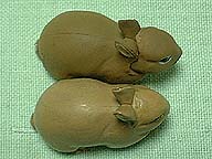 我が家に数体あるネザドワのチョコエッグ。 でも、ず〜っと気にかかっていたことがあります。それは・・・「ネザドワにしては厳つい顔してる」 そして、「りん」と比べて見たりして(笑)達した結論は、「耳と目の間が離れすぎてる!!」 と、いうことで、ちょっと改造しちゃいました。 |