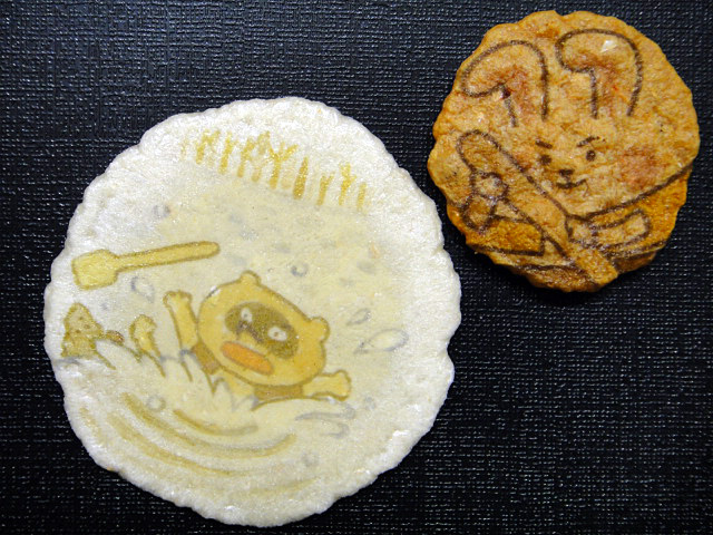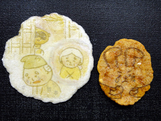中身には3つの袋がはいっていて、1袋に1シーンがえびせんに描かれていて、3つでひとつの物語が完成します。