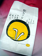 「うさぎ万頭」 吉池放心亭 今回の問題作です。 いつものうさぎ饅頭がお月見期間限定で20円引きの100円。大きさがまちまち、顔の表情もひとつひとつ違う。ポップには手作りの文字が。いいですよ個性があって。 しかし!これはだめでしょ。目が耳より上に書いてあります(笑) |
