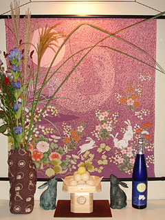 「月見饅頭」青木屋 5個入りにはお月見用に飾る台になる箱にはいって販売されます。 |