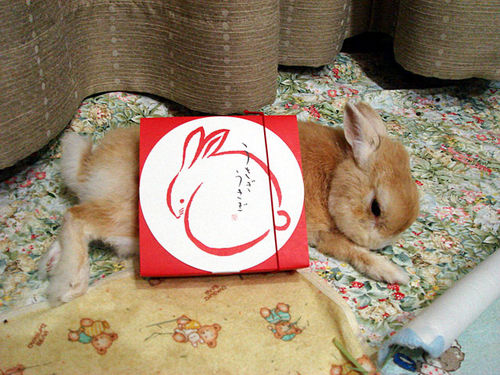 赤いパッケージにまんまるうさぎさんの見返り姿がとても映えます。
